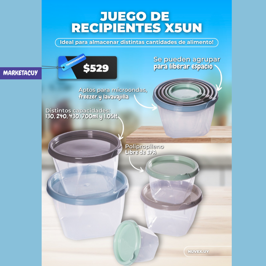 Juego de recipientes 5 en 1 CategoríasProductos físicos Infantil Hogar Campañas publicitarias Quienes somos ¡Oferta! Juego de recipientes 5 en 1$650 $529 Almacená tus alimentos de manera inteligente. Aptos para microondas, freezer y lavavajillas, se agrupan para ahorrar espacio. Con capacidades de 130ml, 240ml, 430ml, 700ml y 1.05lt. Libres de BPA. ¡Todo por $529! Juego de recipientes 5 en 1 cantidad Comprar ahora Categoría: Hogar Productos relacionados ¡Oferta! Lámpara portátil recargable $2.309 $2.099 Añadir al carrito ¡Oferta! BOTELLA A/FÁCIL 1L Perfectas para el gym, oficina o paseos largos. $450 $329 Añadir al carrito ¡Oferta! Botella QUOKKA ACERO SOLID 630ml $1.700 $1.599 Añadir al carrito ¡Oferta! Máquina de cortar pelo Trimmer color dorado $959 $899 Añadir al carrito