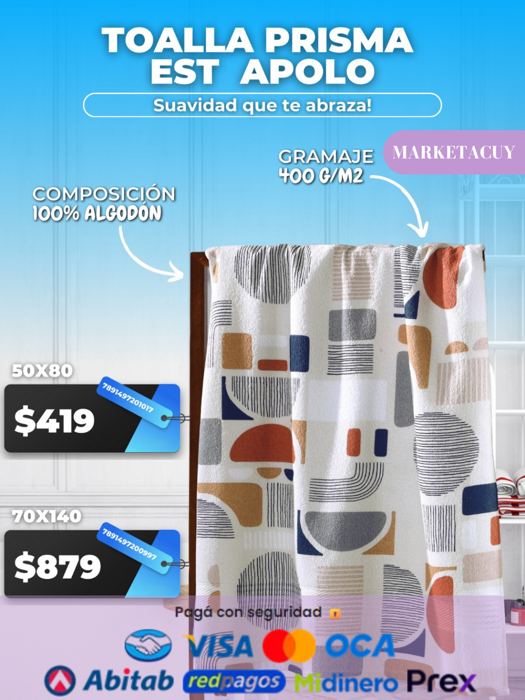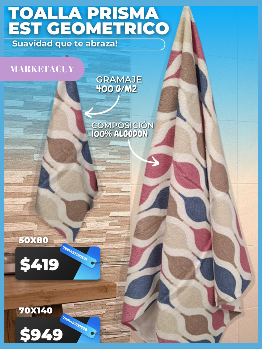 Toallas Prisma. Disponible en diferentes diseños. 2 tamaños